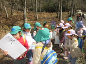 市内の園児たちが年間を通して1~4回くつきの森の中であそびます。
